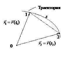 Скорость и ускорение. Для характеристики движения материальной точки вводят векторную величину – скорость, определяющую как быстроту перемещения в пространстве, так и направление движения в данный момент времени. Пусть в момент времени t точка находится в положении 1 и характеризуется радиусом-вектором