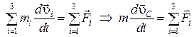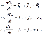 - равнодействующую внешних сил, действующих на i -ю точку. Запишем второй закон Ньютона через скорость в виде (2.2) для трех частиц: