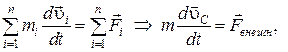 Сложим правые и левые части этих трех уравнений, учитывая, что сумма всех внутренних сил согласно 3-му закону динамики равна нулю и используя (2.12):