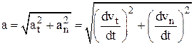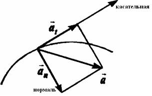 Вектор ускорения можно представить в виде суммы составляющих по двум взаимно перпендикулярным осям: касательной и нормали к кривой.