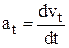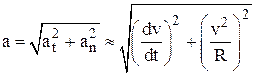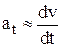 Поэтому тангенциальное ускорение может быть записано как производная по времени от величины скорости (приближённо!):