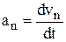 Составляющая ускорения, направленная по касательной к траектории, носит название тангенциального ускорения – at, а направленная ей перпендикулярно — нормального ускорения – an.