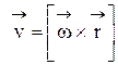 Более общее соотношение очевидно из чертежа, где вектор линейной скорости представляет собой векторное произведение вектора угловой скорости –