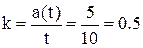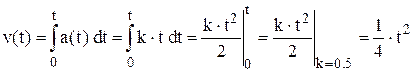 Гоночный автомобиль движется на прямолинейном участке траектории так, что его ускорение растёт линейно и за первые 10с достигает значения 5 м/с2. Пренебрегая его собственными размерами и массой, определить в конце 10-ой секунды: 1) скорость автомобиля; 2) пройденный им путь.