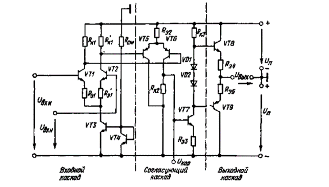 1.2 ОУ являются аналоговыми ИС и используются практически повсеместно. Первые ИС ОУ проектировались по 3-х каскадной схеме.