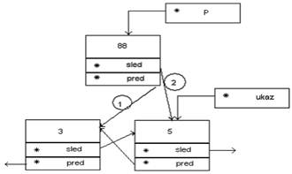 4.4. ukaz^.pred:=p (ukaz^.pred будет указывать на тот элемент, на который указывает р);