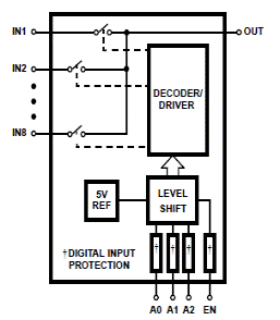 Рисунок – Мультиплексор 8×1 на основе аналоговых МОП ключей