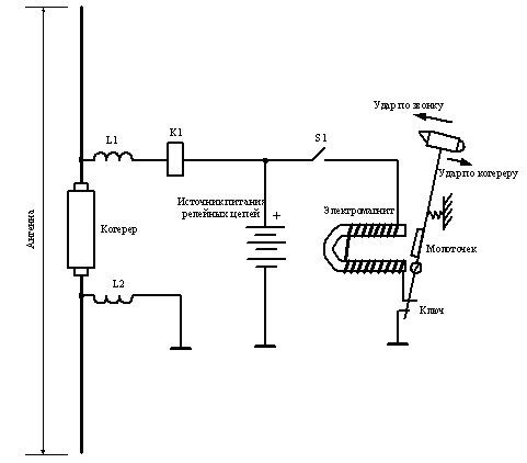 Рисунок 3 Схема релейного приемника А.С. Попова