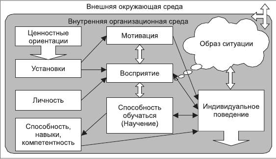 Для понимания поведения конкретных людей в организации необходимо исследовать их взаимодействие с различными факторами, с которыми они сталкиваются в данной организационной среде. Индивидуальное поведение является функцией множества переменных. Наиболее важные из них представлены на рис. 2.1.1.