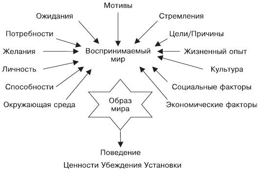 Дарья и Андрей восприняли по-разному одну и ту же ситуацию. Можно допустить, что персонал в офисе различно реагировал на обоих из-за различий в их внешности. Может, Андрей был любезным, улыбающимся человеком, в то время как у Дарьи был унылый вид. Возможно, что реакция служащих была одинакова в обоих случаях, но поскольку новые сотрудники восприняли ситуацию по-разному, то и отреагировали соответственно. Разница в восприятии могла быть обусловлена разницей в характеристиках личностей, установках, личных представлениях. Дарья, возможно, была обеспокоена и не уверена в себе и восприняла ситуацию в наиболее неблагоприятном свете. Андрей же мог быть весьма уверенным в себе человеком и иметь склонность видеть окружающее в благоприятном свете. Следовательно, характеристики воспринимающего, как и характеристики воспринимаемого влияют на то, как люди видят окружающий их мир.