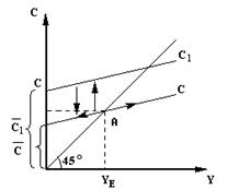 Кроме того, Кейнс предположил, что существует автономное потребление, не связанное с доходом и оказывающее влияние на общую величину потребления.