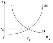 Пересечение кривых IS и LM в точке Е (рис.25) означает, что денежное предложение достаточно для такой ставки процента, которая уравновешивает планируемые инвестиции и сбережения.