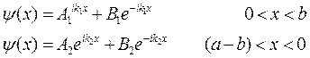 | Рис. | Найдём решение уравнения Шредингера для потенциала, показанного на рис. …. Волновая функция имеет вид |