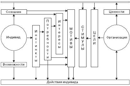 В качестве инициатора представления, основы формирования и цели применения механизма мотивации выступает человек, причем одновременно как субъект и объект целенаправленного воздействия, осуществляемого индивидуально или в рамках различных организаций. Представленная модель механизма выделяет первичность самоорганизации индивида, его инстинктов, потребностей и интересов, во многом определяющих формирование и становление личности в сложившихся общественных условиях. В реальной жизни это происходит в сложившейся и малоизменяющейся последовательности.