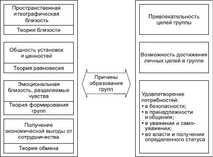 В качестве причин, по которым люди объединяются в группы, называют также возможность достижения целей и удовлетворение потребностей в обеспечении безопасности, в общении, в принадлежности, в самоуважении, усилении власти и получении определенного статуса (рис. 5.1.1).