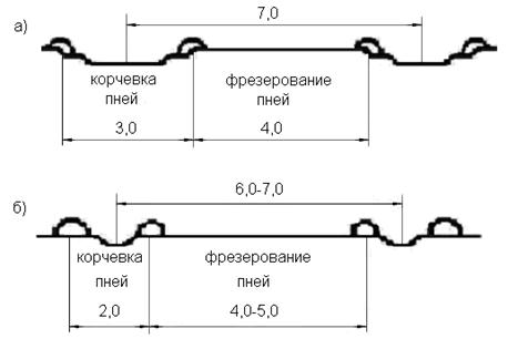 Схема расчистки лесокультурных полос с корчевкой и фрезерованием пней: