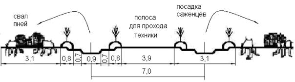 Широкополосная расчистка площади на вырубке 5…15-летней давности.