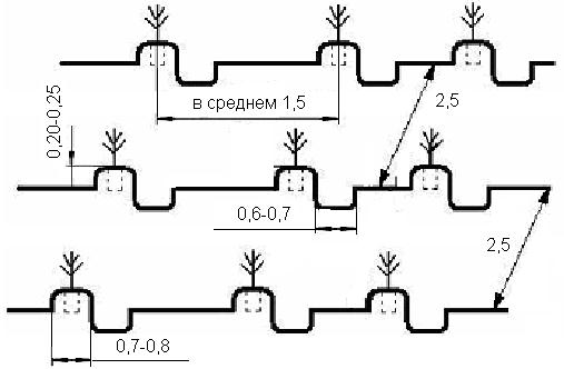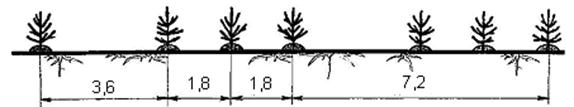 Группово-рядовые культуры на дискретных микроповышениях объемом 0,4…0,7 м3 (0,8…1,2 тыс. микроповышений на 1 га).