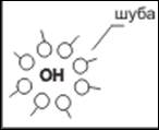 ПАВ при помощи специальных приемов ориентируют таким образом, что гидрофильная часть направлена к гидрофильной группе целлюлозы, а гидрофобная часть образует «шубу» (рис. 8), которая и предохраняет целлюлозу от взаимодействия с водой.