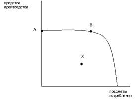 2) комбинацию товаров, при которой достигается выпуск максимального количества средств производства, в то время как объем выпуска предметов потребления равен нулю
