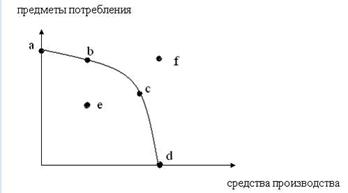 1) комбинацию товаров, при которой достигается выпуск максимального количества предметов потребления, в то время как объем выпуска средств производства равен нулю