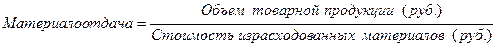 Обобщающим показателем эффективности использования материалов в производстве может служить материалоотдача, т.е. выход продукции с единицы стоимости предметов труда: