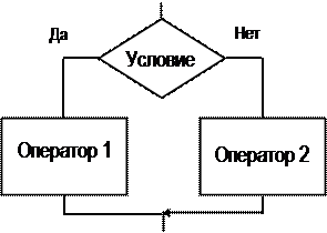 Структура "ветвление" разделяет последовательность действий на 2 направления в зависимости от итога заданного условия.