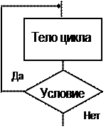 Структура " повторение" обеспечивает повторное выполнение одного или группы операторов – цикл. Эта группа операторов называется телом цикла.