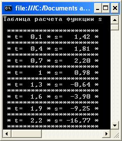 Console.WriteLine("Таблица расчета функции s");