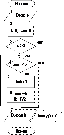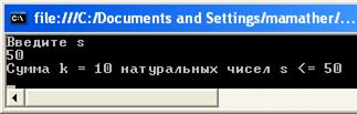 Задача6. Определить число К натуральных чисел, сумма которых не превышает S.