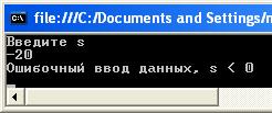 else Console.WriteLine("Ошибочный ввод данных, s < 0 ");
