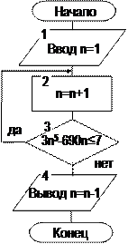 Задача7. Вычислить наибольшее положительное целое число n, удовлетворяющее условию: 3n5 - 690n £ 7.