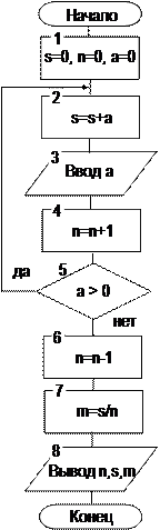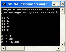 Задача8. Написать программу, вычисляющую сумму и среднее арифметическое последовательности положительных чисел, которые вводятся с клавиатуры.