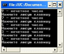 Здесь выводятся только нечетные числа, поскольку при обнаружении четного числа происходит преждевременный переход к следующей итерации и метод WriteLine не вызывается.