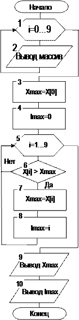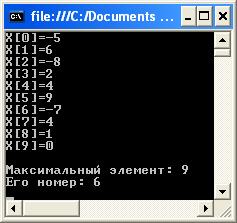 Задача 1. В массиве X из 10 элементов вычислить наибольший элемент массива и его номер.