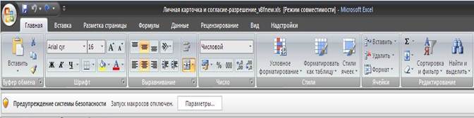 - если Вы открываете форму для заполнения в Excel 2007, то Вам необходимо щелкнуть по кнопке ”Параметры” (см. рис)
