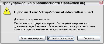 - если Вы открываете форму для заполнения в OpenOffice.org, то Вам достаточно будет выбрать ”Включить макросы” и Вы сможете использовать весь функционал е-формы для ее быстрого заполнения