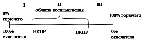 Рис.1. Соотношение между горючим и окислителем в горючей смеси.