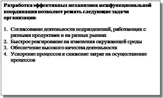 Основой горизонтальной организации является межфункциональная координация, требуемая для производства и продажи продуктов и услуг.