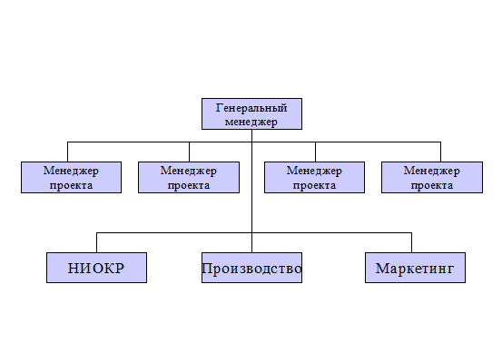 Наиболее распространенная структура горизонтальной иерархии основана на создании проектных команд, интегратор которых находится на одном уровне подчиненности высшему звену управления с функциональными менеджерами (рис…..). Рис. показывает продуктовых (или проектных или сервисных) менеджеров как интеграторов, отчитывающихся перед генеральным менеджером бизнес-единицы.