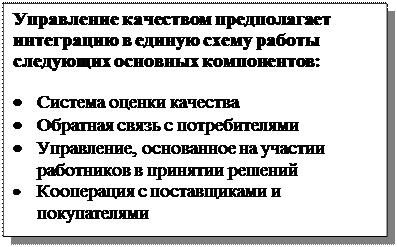 В настоящее время представляется достаточно сложным четко выделить специфические черты управления качеством, поскольку политика повышения качества выпускаемой продукции тесно связана с внедрением в жизнь компаний таких концепций, как реинжиниринг, привлечение внешних ресурсов, создание самообучающейся организации. Тем не менее, существует ряд областей управления, без фокусировки которых на повышение качества работы невозможно говорить о наличии системы управления качеством в компании.