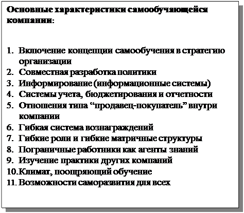 Таким образом, при создании самообучающейся организации перед руководством стоят следующие основные управленческие задачи:
