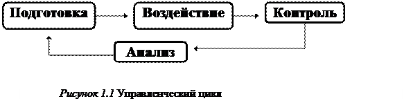 В широком смысле управление включает в себя не только само воздействие, но также и подготовку к нему, контроль за деятельностью объекта управления и анализ полученных результатов (см. рисунок 1.1). В этом случае управление является непрерывным действием, которое начинается с момента установления взаимодействия между субъектом и объектом и заканчивается только с прекращение этого взаимодействия.