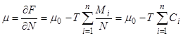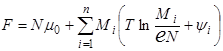 С другой стороны, рассматривая данную систему как слабый раствор, содержащий n различных компонент, можно представить свободную энергию мицеллярного раствора в виде