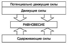 Очевидно, что чем более глубокие и радикальные изменения проводятся, тем выше вероятность сопротивления им. В любой организации всегда имеются движущие и сдерживающие силы (рис. 9.3.1).