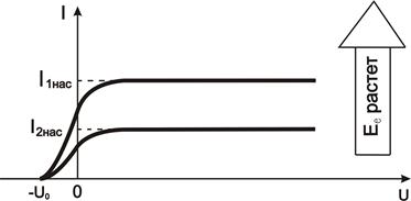I. Закон Столетова: при фиксированной частоте падающего света число фотоэлектронов, вырываемых из катода в единицу времени, пропорционально интенсивности света (сила фототока насыщения пропорциональна энергетической освещенности Ее катода).