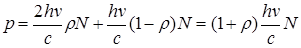 Рассчитаем с точки зрения квантовой теории световое давление, оказываемое на поверхность тела потоком монохроматического излучения (частота v), падающего перпендикулярно поверхности. Если в единицу времени на единицу площади поверхности тела падает N фотонов, то при коэффициенте отражения р света от поверхности тела pN фотонов отразится, а (1—р) N —поглотится. Каждый поглощенный фотон передает поверхности импульс pY=hv/c, а каждый отраженный — 2py=2hv/c (при отражении импульс фотона изменяется на — ру). Давление света на поверхность равно импульсу, который передают поверхности в 1 с N фотонов: