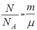 где N — число молекул в системе, m = m0 N — масса системы (m0 — масса одной молекулы), μ = m0 NA — молярная масса вещества.