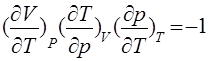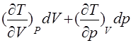 Наличие связи между любыми тремя параметрами простой системы, налагаемой уравнением состояния, приводит также к связи между их производными. Выразив изменение Т через изменения р и V: