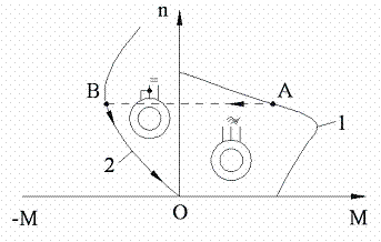 Пусть двигатель работает с нагрузкой в точке А. При подаче на обмотку статора постоянного напряжения рабочая точка перейдет из точки А в точку В тормозной характеристики 2.